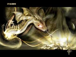 At once the girl's body grew to an enormous size and became covered with coloured scales. her golden hair turned into crests and two wings sprouted from her shoulders. With a howl of despair, the cuelebre slunk off weeping, and hid in a cave by the sea.